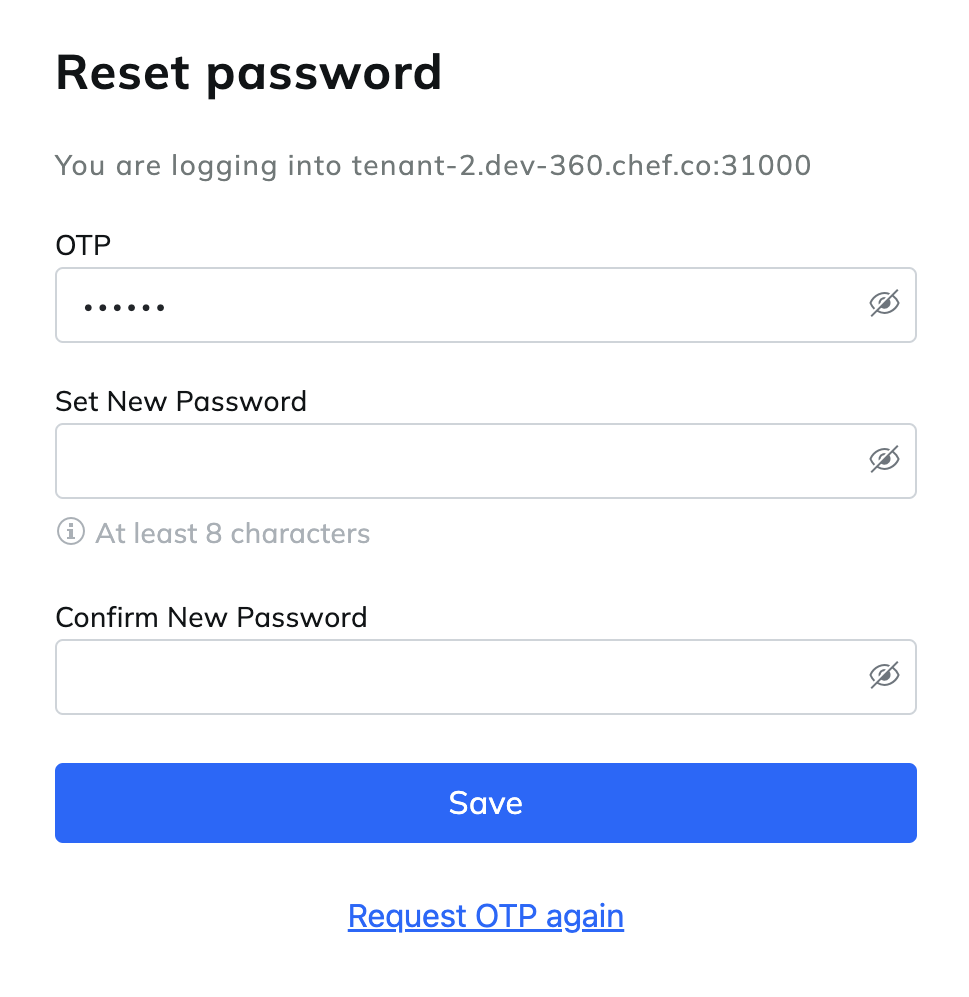2. Open the link from the email sent by Chef 360 Platform. In set your new password with at least eight characters.